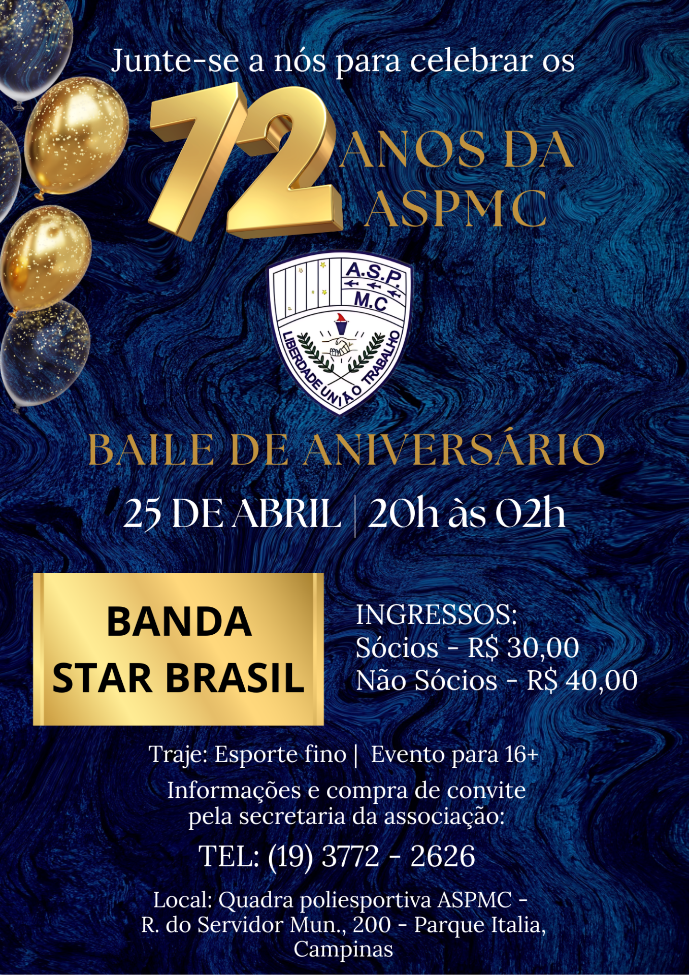BAILE DE ANIVERSÁRIO - 72 ANOS DE ASPMC